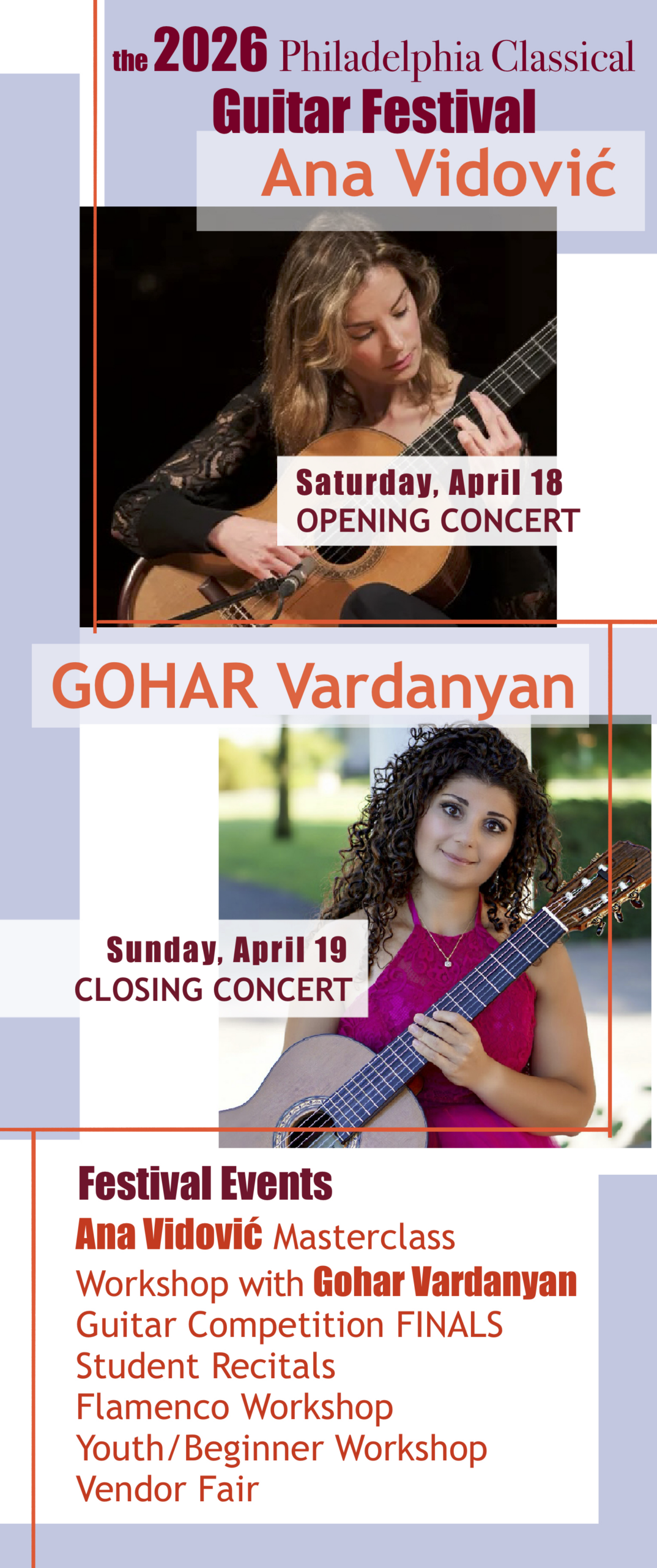 Founded in 1967 as not-for-profit 501c3, The Philadelphia Classical Guitar Society (PCGS) has been a community of members of all ages and accomplishments dedicated to supporting and encouraging classical guitar activities throughout the Delaware Valley.
